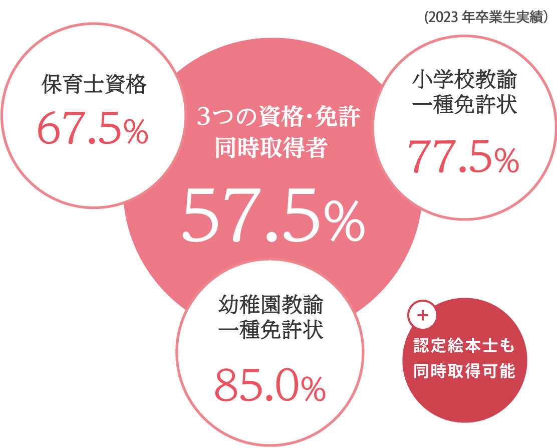 ※どの専攻でも3つの資格・免許の同時取得をめざせます。