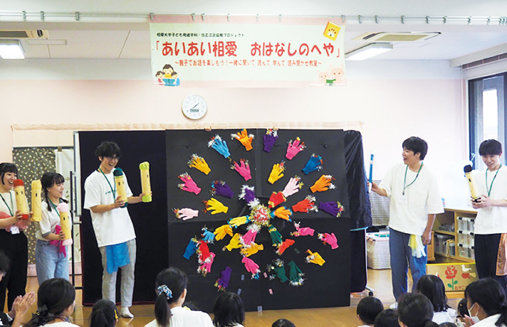 相愛大学では、大学キャンパスの中で地域の親子と関わる機会が豊富にあります。安心できる環境での体験中心の学びから、子ども理解を深め、社会で活躍できる「先生力」「生きる力」が身につきます。