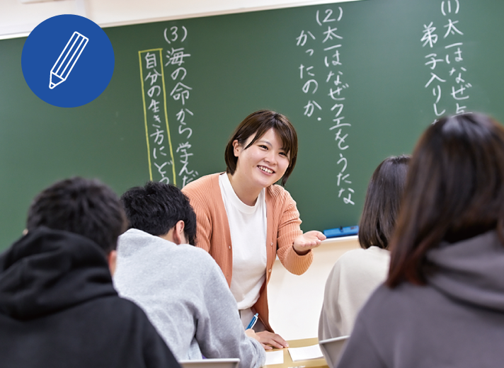 小学校教諭採用試験(公務員試験)に向け専用学習室で学生同士や教員と学び合い合格をめざします。