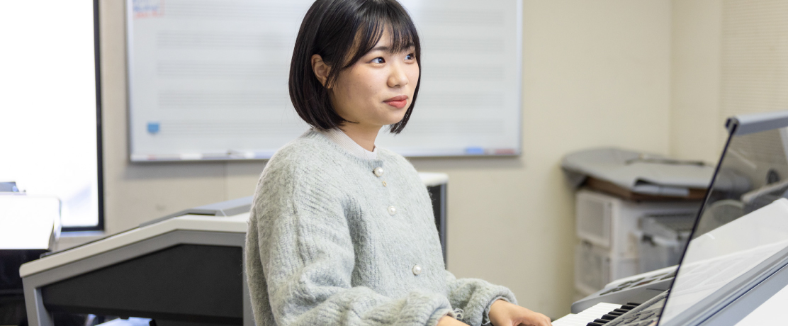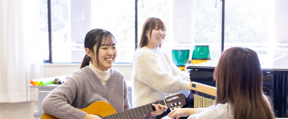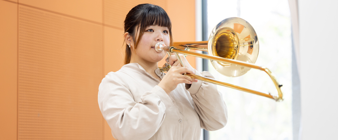 プロの音楽家として活躍する一流の教授陣による指導のもと、専門分野に分かれて演奏技術を磨くとともに感性豊かな音楽人を育てる演奏コース。そして、作曲家を育成する作曲専攻に加え、音楽を学術的視点から学ぶ音楽学専攻、医療・福祉分野での活躍をめざす音楽療法専攻、音楽業界への就職をめざすアートプロデュース専攻を設ける音楽文化創造コース。ここに特別演奏コースを加えた3コースで、多彩な夢に応えます。