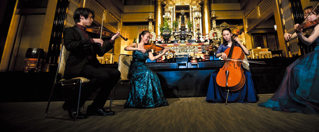 相愛オーケストラの定期演奏をはじめ、アンサンブルやソロなど幅広い編成で演奏します。舞台もコンサートや学校、寺院や病院などさまざま。数多くの本番経験を積みながら、「聴き手に届く音楽」を追求します。