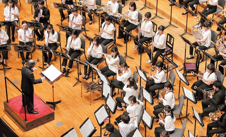 木管楽器、金管楽器、弦楽器、打楽器などのグループに分かれ、アンサンブルの基礎から学修し、演奏会も行います。様々な編成のアンサンブルに対応できる技術とともに、グループ活動での協調性や対話力も伸ばします。