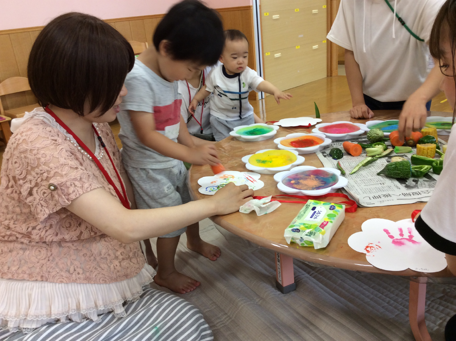 保育者をめざす学生たちが「よつばのクローバー」というあそびのひろばを準備しています。学生たちにとって子育ての先輩である「お母さん先生」と、子育てのお話などもできればありがたいです。